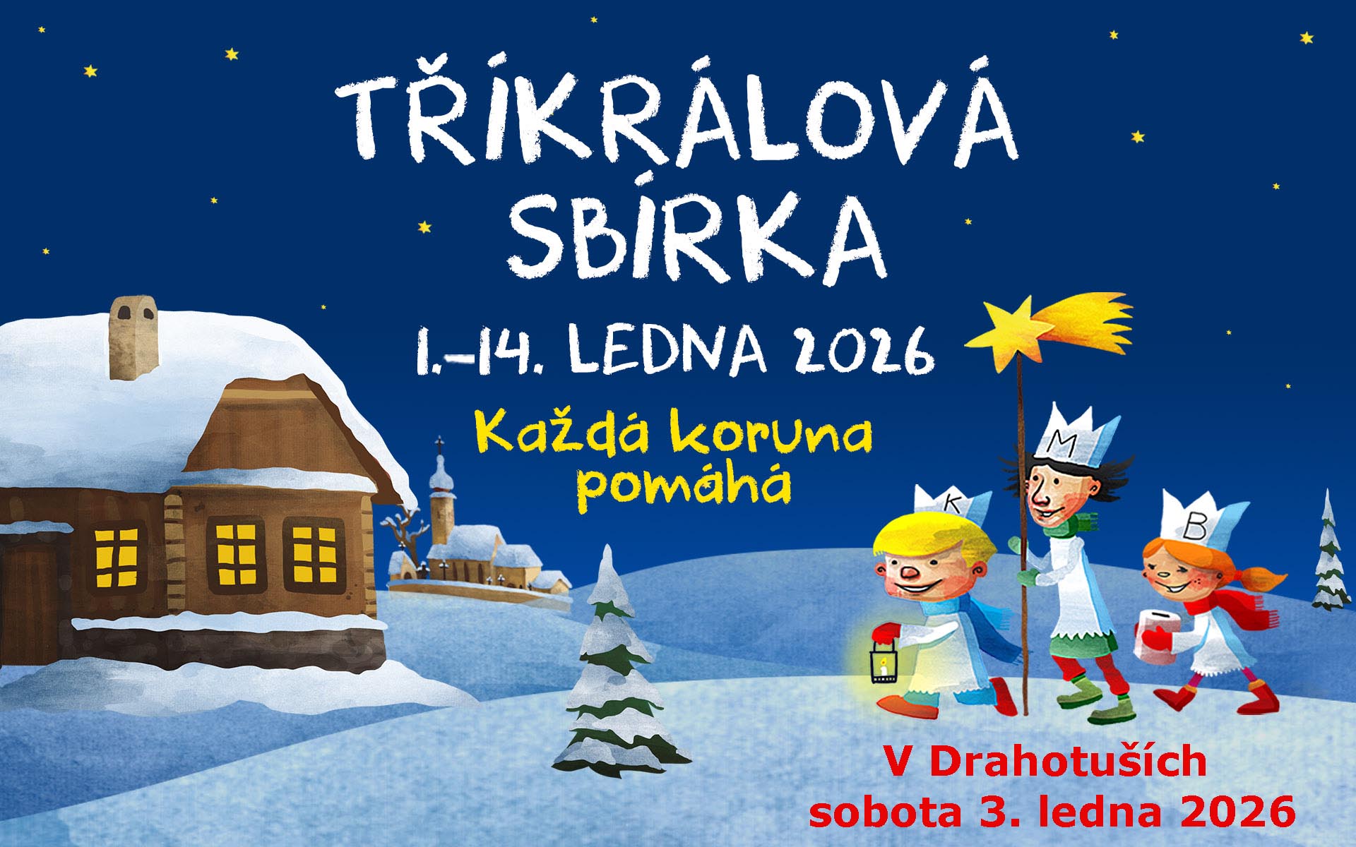Charita Hranice oznamuje, že proběhne TŘÍKRÁLOVÁ SBÍRKA v Drahotuších ve dnech od soboty 4. ledna do 12. ledna 2025.