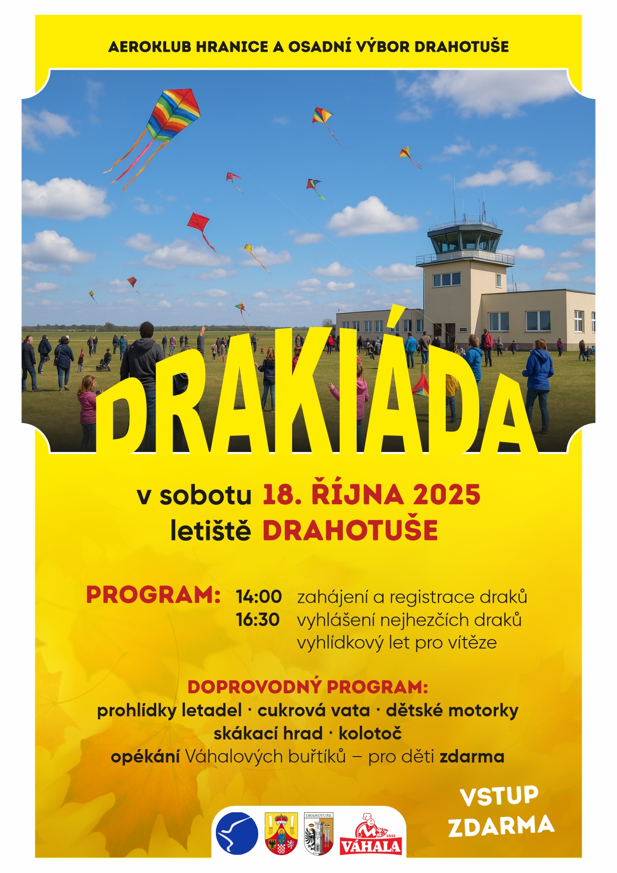 7.9.2025Osadní výbor Drahotuše Vás srdečně zve na DOBROČINNÝ BAZAR - oblečení, knih, sport a hračky. Příjem věcí 29.-30.9. a 1.10.2025 Prodej věcí 2.-4.10.2025 v prostorách Osadního výboru v Drahotuších.